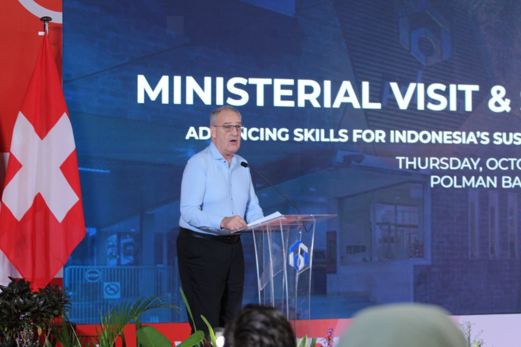October 7, 2025Bandung, 2 Oktober 2025 — Politeknik Manufaktur Negeri Bandung (POLMAN) menjadi tuan rumah acara Ministerial Visit and Signing Cermony yang digelar di Gedung Rupantama, Rabu (2/9). Kegiatan ini dihadiri langsung oleh tokoh penting dari Indonesia dan Swiss, juga menandai langkah strategis dalam memperkuat kerja sama bilateral di bidang pendidikan vokasi, energi, dan pembangunan berkelanjutan.