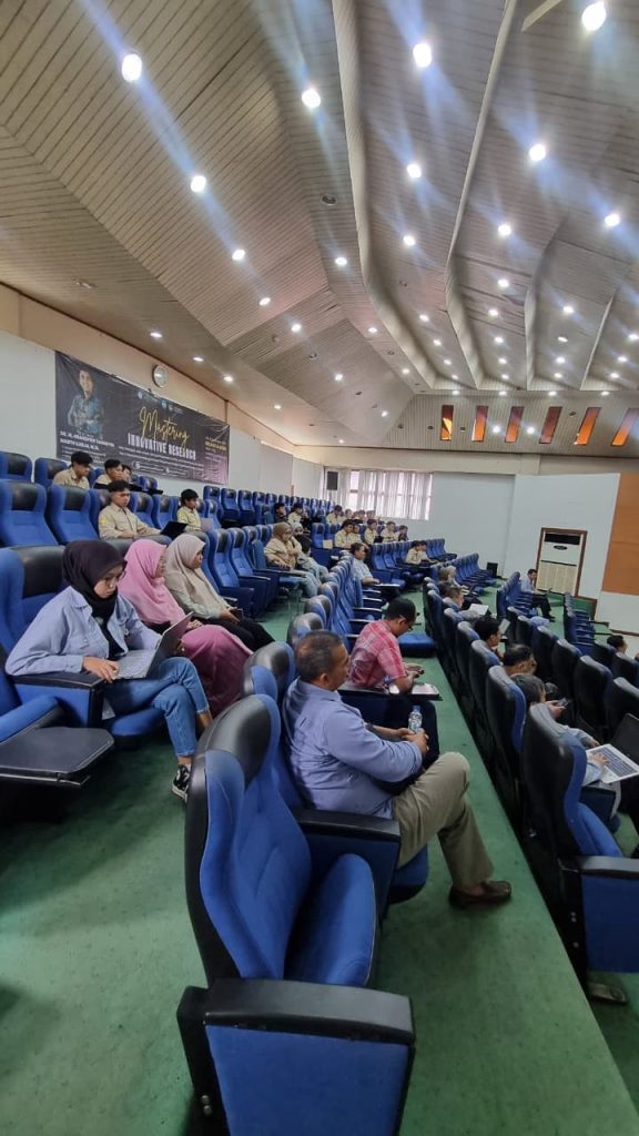 Memasuki inti paparan, Ia menyoroti pentingnya reputasi keilmuan sebagai fondasi kolaborasi. Menurutnya, kolaborasi bukan sekadar dicari, tetapi akan datang dengan sendirinya ketika seorang peneliti memiliki rekam jejak akademik yang kuat. Reputasi tersebut tumbuh dari kualitas publikasi, kontribusi nyata terhadap bidang ilmu, serta konsistensi dalam mengembangkan riset fundamental. Ia juga mendorong para peneliti untuk berani melakukan branding inovasi agar karya mereka semakin dikenal dan memiliki posisi kuat baik di tingkat nasional maupun internasional.