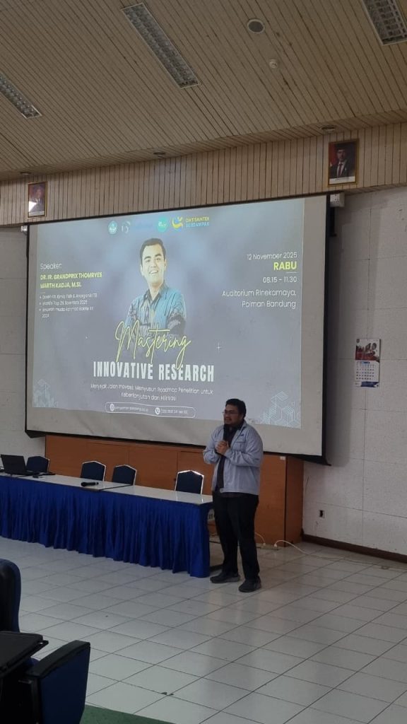 November 26, 2025Bandung, 12 November 2025 — Politeknik Manufaktur Bandung (POLMAN) melalui Pusat Penelitian dan Pengabdian kepada Masyarakat (P3M) mengadakan seminar bertajuk Mastering Innovative Research: Menjejak Jalan Inovasi, Menyusun Roadmap Penelitian untuk Keberlanjutan dan Hilirisasi. Kegiatan yang berlangsung di Auditorium Rinekamaya ini menghadirkan Dr. Ir. Grandprix Thomryes Marth Kadja, M.Si., Deputy Director for Center/Research Center/Center of Excellence dari Direktorat Riset dan Inovasi Institut Teknologi Bandung (ITB), dan diikuti oleh dosen, peneliti, serta mahasiswa dari berbagai program studi.